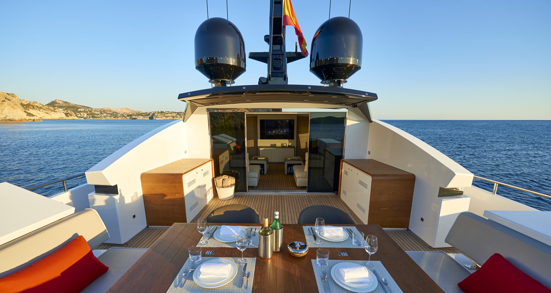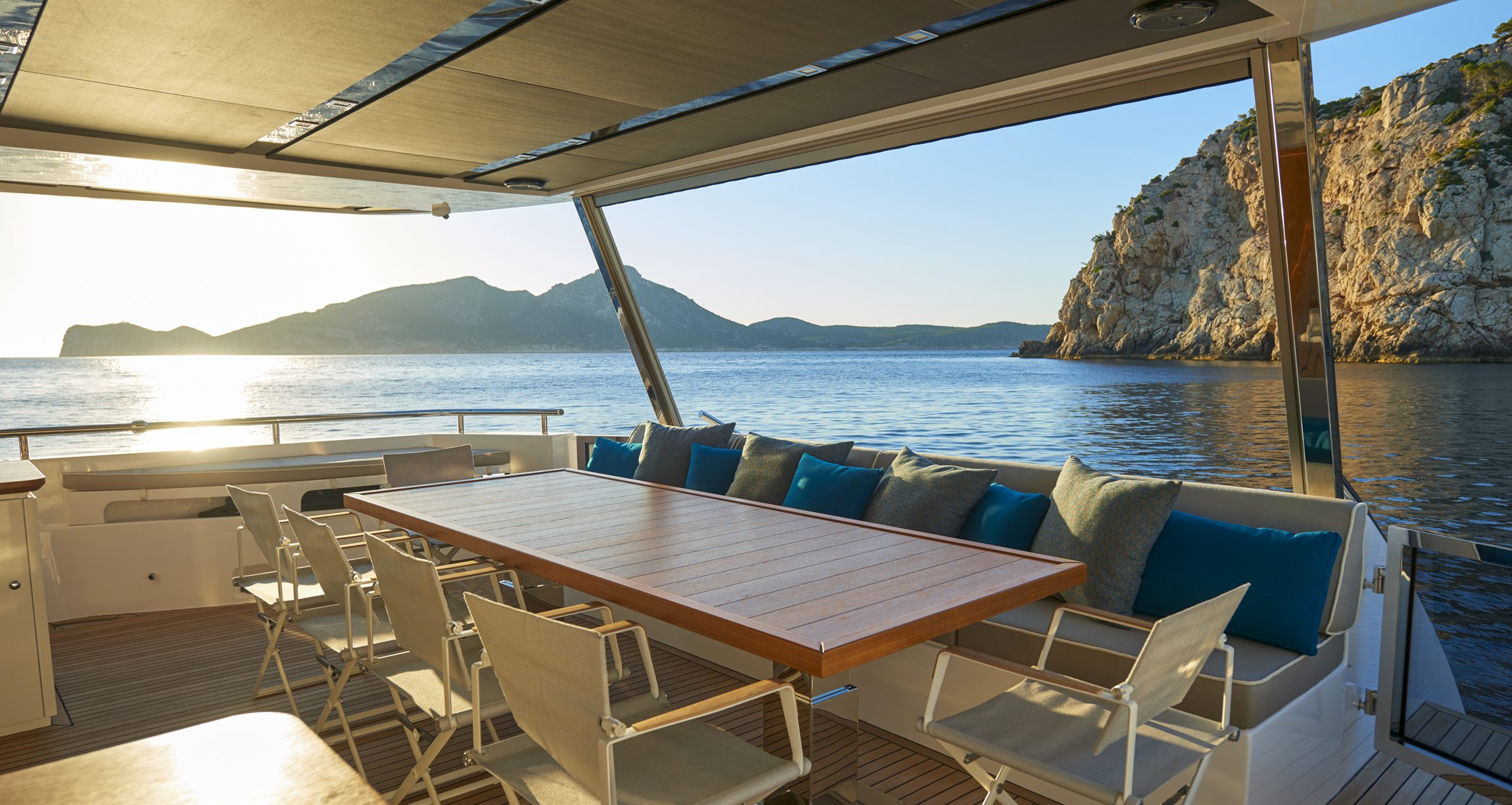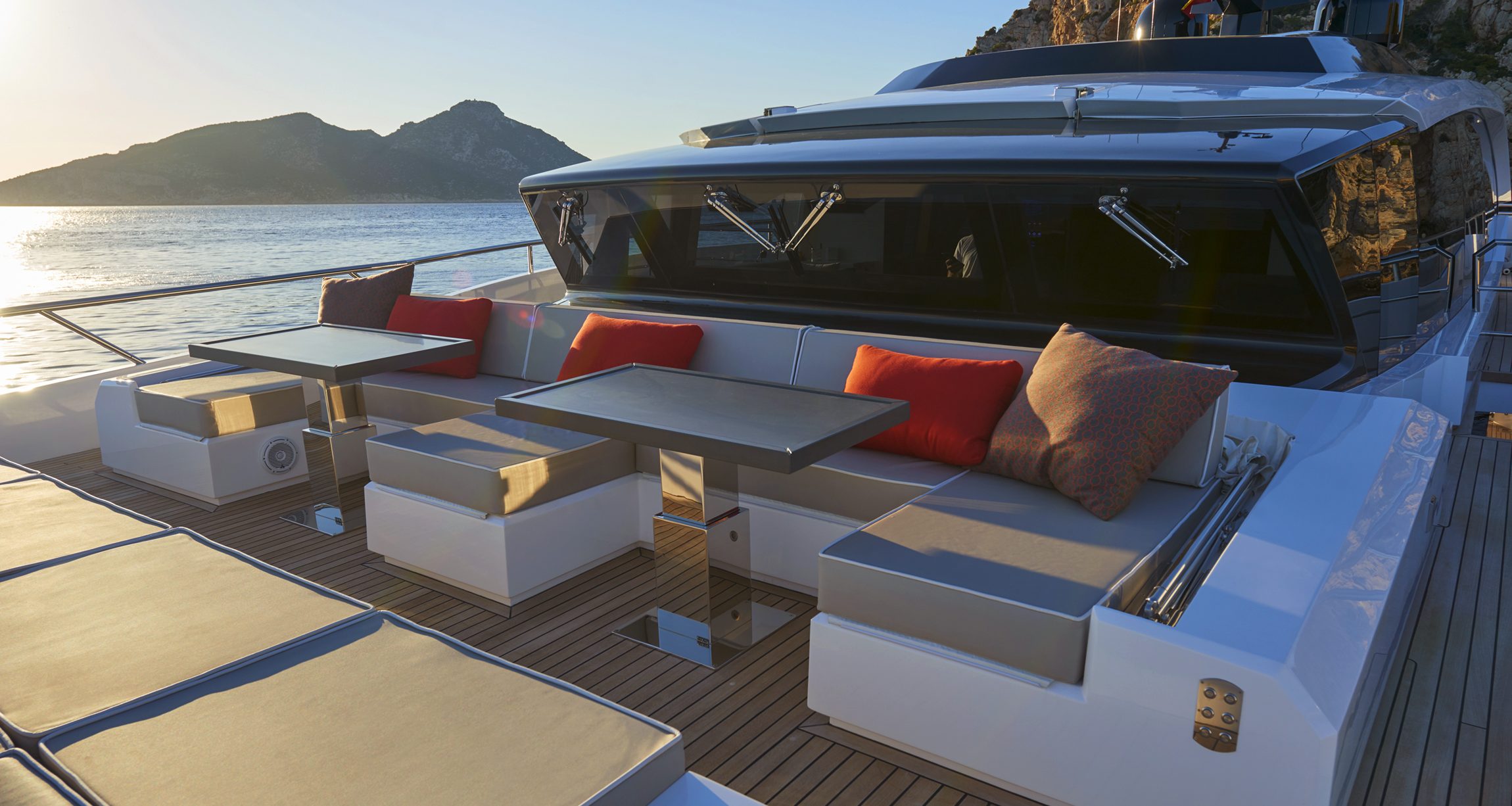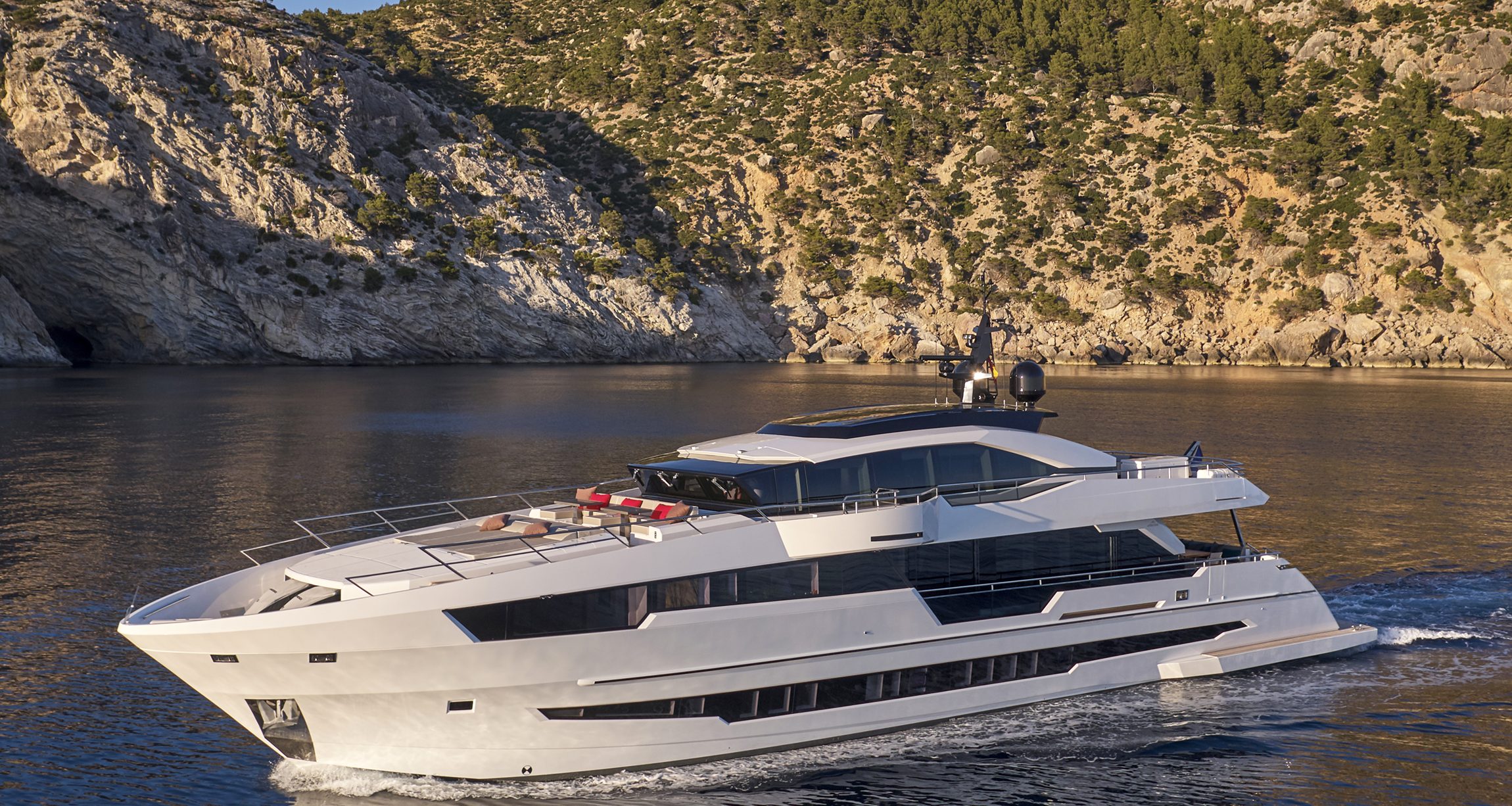 Progettato per offrire un’esperienza di navigazione condivisa con familiari e amici, l’Astondoa 110 Century accoglie gli ospiti con spazi aperti e un’ampia disponibilità di comfort. Equipaggiato con numerose comodità tipiche dei Megayacht, tra cui un vasto flybridge, un Sky Lounge e un garage per tender, Astondoa sfrutta ogni centimetro di spazio esterno e interno per offrire aree dedicate alla socializzazione, al relax, al divertimento e al piacere culinario, oltre che alla pratica degli sport acquatici.